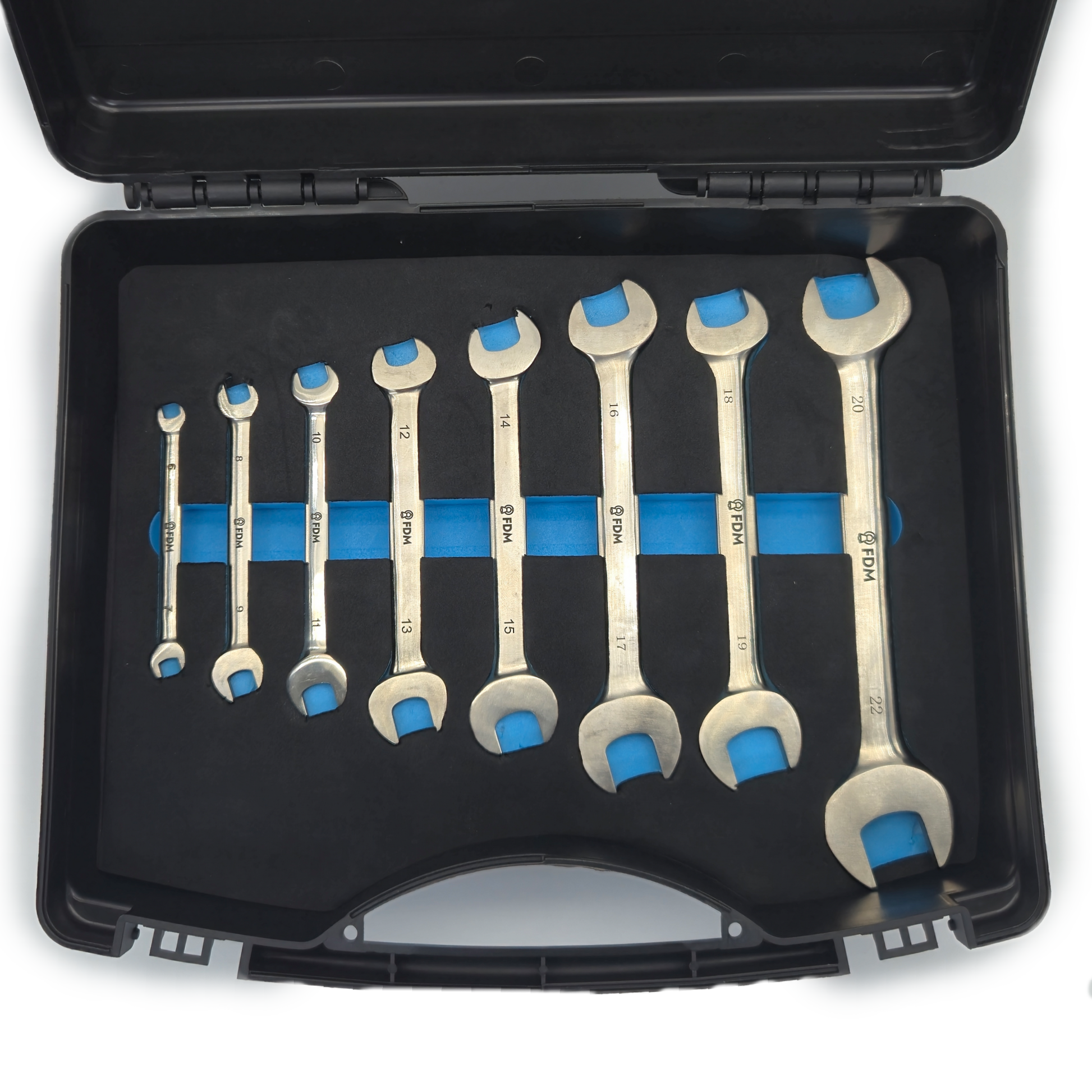6mm x 7mm, 8mm x 9mm, 10mm x 11mm, 12mm x 13mm, 14mm x 15mm, 16mm x 17mm, 18mm x 19mm, 20mm x 22mm.
